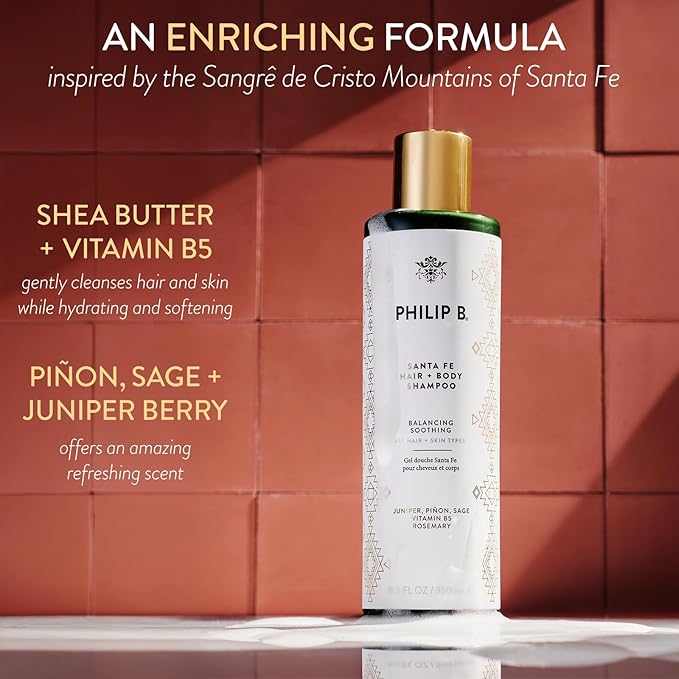 PHILIP B Santa Fe Hair and Body Shampoo (11.8 Fl Oz) - Gentle Cleanser, Hydrates and Softens with Shea Butter & Vitamin B5