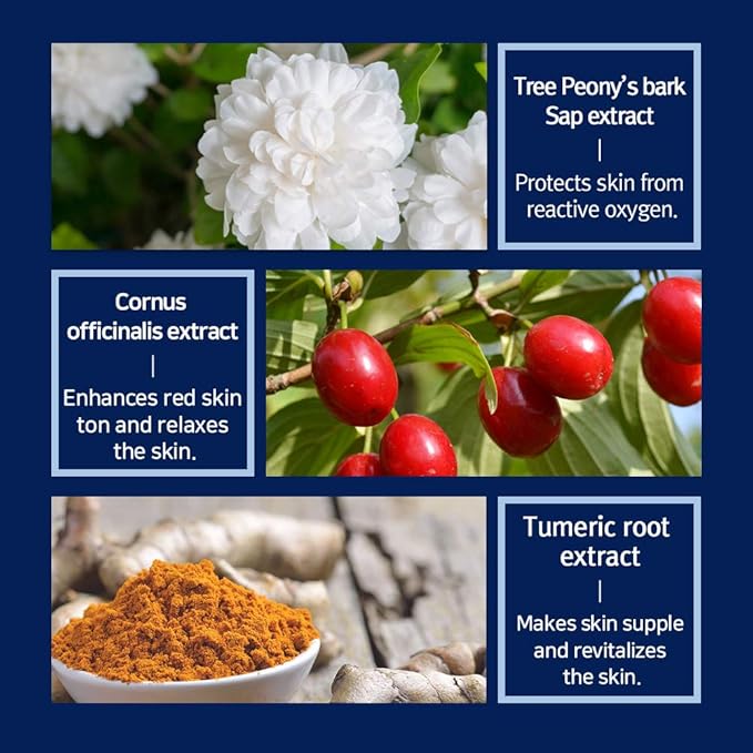 - ANTIOXIDATION FROM 3 NATURAL EXTRACTS - Instead of Retinol chemical ingredient, the cream concentrates the nature ingredients - Tree Peony's bark Sap extract, Cornus officinalis extract, Tumeric root extract. 3 natural ingredients can protect skin from reactive oxygen, enhances red skin ton and relaxes the skin gently.