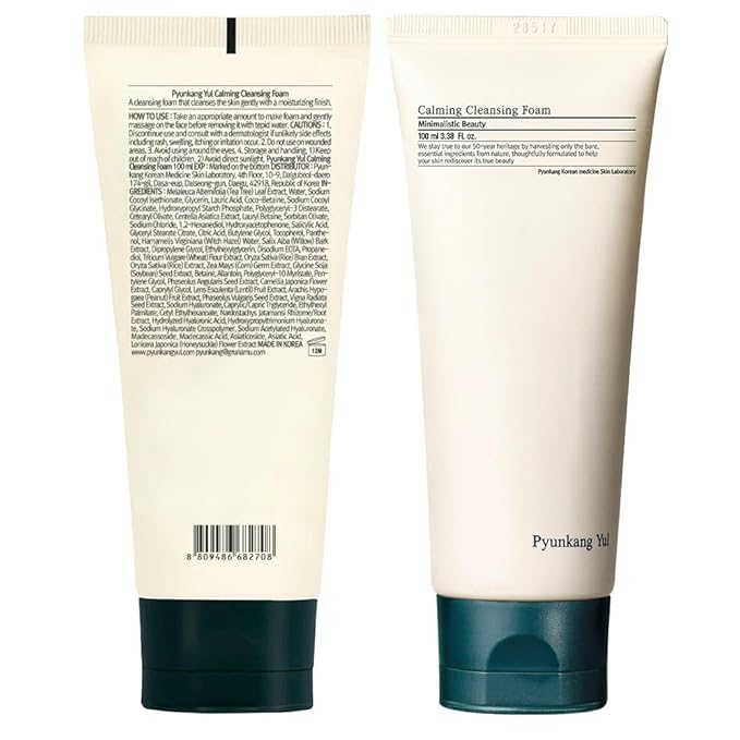 Pyunkang Yul PKY Calming Cleansing Foam, Low pH Formula Facial Wash/Cleanser with Witch Hazel, AHA for oil control- Cica, Tea Tree Extract - Rapid Moisture replenishment 3.38 Fl.oz