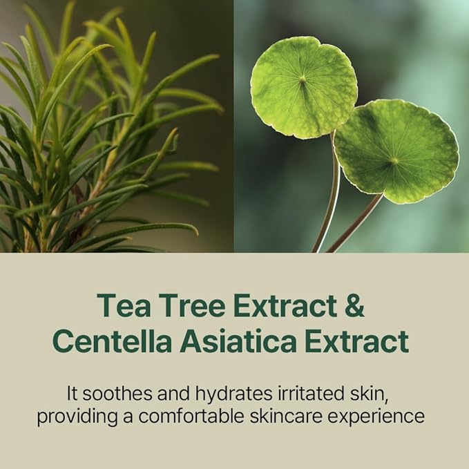 - RAPID CALMING - Centella asiatica, Tea tree extract known as a representative soothing ingredient, that quickly calms irritated and sensitive skin, leaving the skin soothed and protected even after cleansing. 100% Natural surfactants film the skin's moisture barrier, making the skin hydrated without irritation.