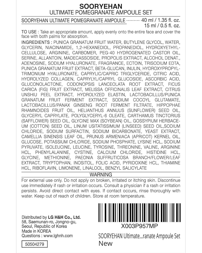 Sooryehan Ultimate Pomegranate Ampoule Set (55 ml/1.86 fl oz) - Skin Elasticity, Reduced Wrinkles & Skin Tone Improvement by LG Beauty. Collagen, Elastin, Vitamin C, Propolis,