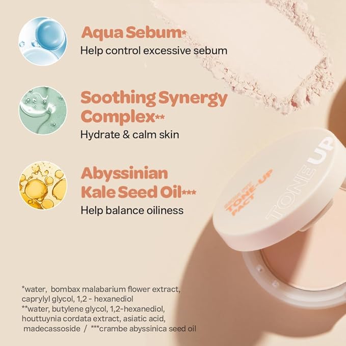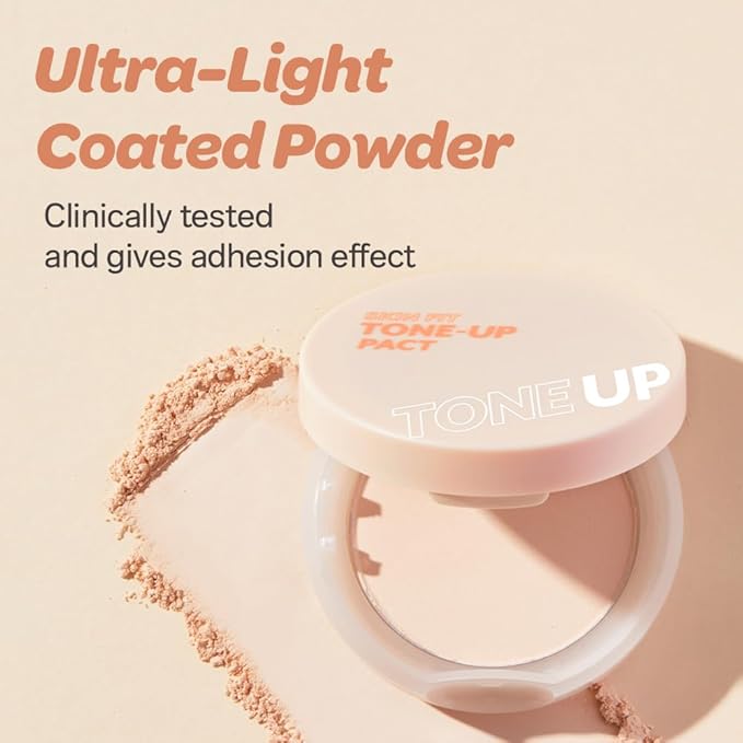 I'M MEME Compact - Skin Fit Tone Up Pact | FLawless Finish with Aqua Sebum, Soft & Velvet Pressed Powder Compact, Smooth Pores & Fine Lines, Korean Makeup, Translucent, Oily Skin, 0.35 Oz