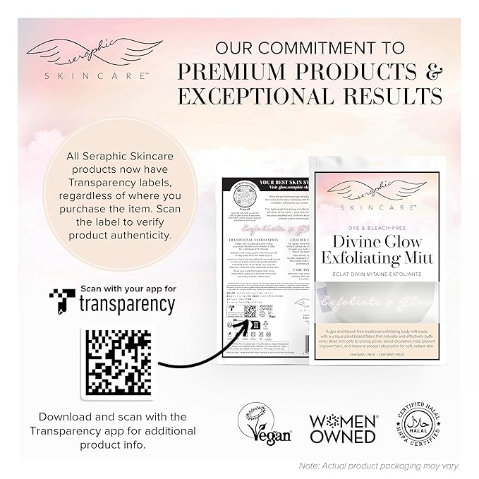 - INDULGE IN AN AT-HOME SPA EXPERIENCE – At Seraphic Skincare, we’re committed to offering premium exfoliating products at affordable prices. We invite you to immerse yourself in the luxurious experience of exfoliation and self-care at home by adding our Korean-style exfoliating mitts to your beauty routine. Get that glow you’ve been dreaming about!