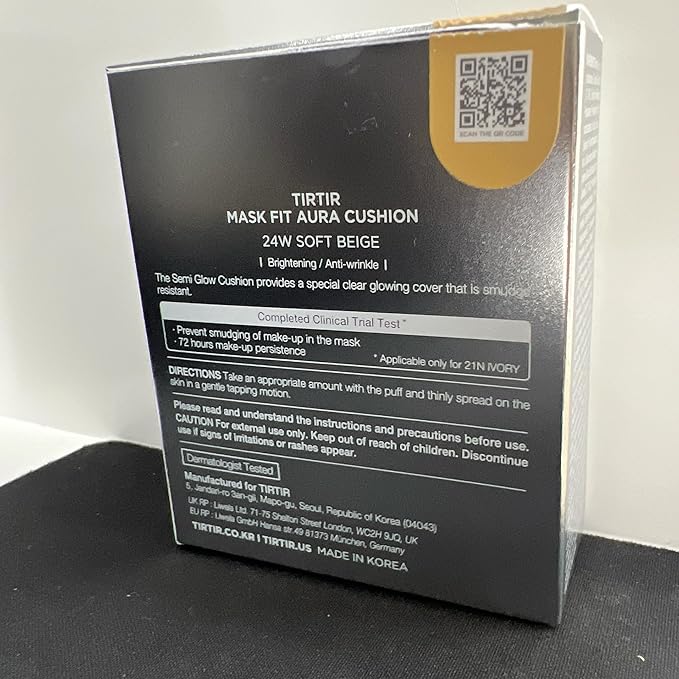 TIRTIR Mask Fit Aura Silver Cushion Foundation | Semi-glow Finish, Natural Coverage, Moisturizing, Lightweight, Korean cushion foundation (#24W Soft Beige, Full Size, 0.63 Fl Oz)