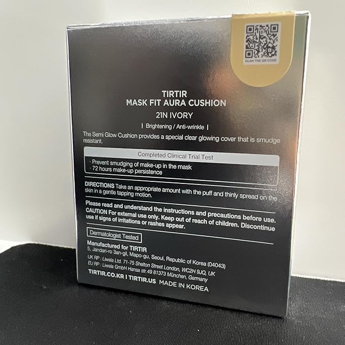 TIRTIR Mask Fit Aura Silver Cushion Foundation | Semi-glow Finish, Natural Coverage, Moisturizing, Lightweight, Korean cushion foundation (#21N Ivory, Full Size, 0.63 Fl Oz)