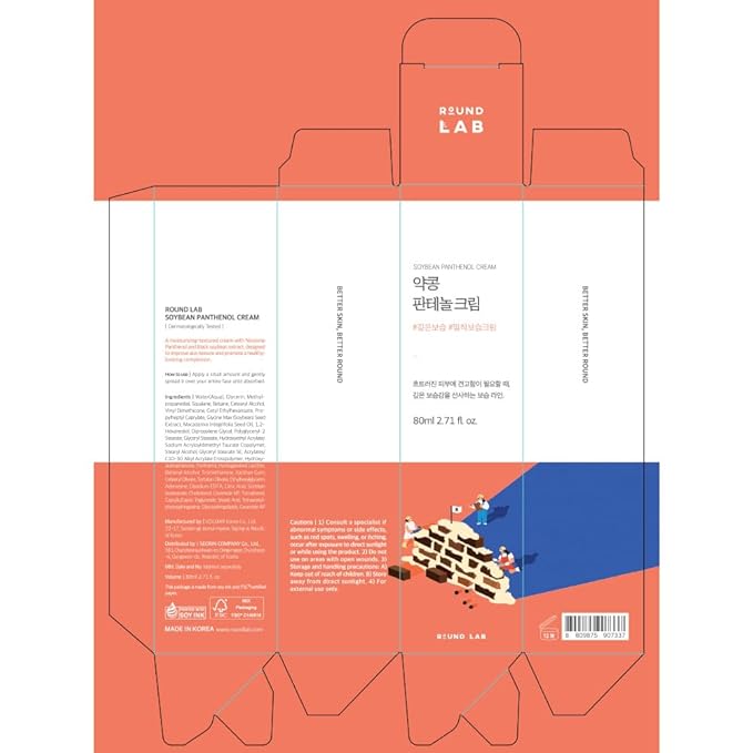 ROUND LAB Soybean Panthenol Cream 2.71 Fl Oz, 120-Hour Deep Hydration and Skin Barrier Repair Moisturizer with Nano Niosome Panthenol, Improves Rough Texture, Locks in Moisture, Korean Skincare