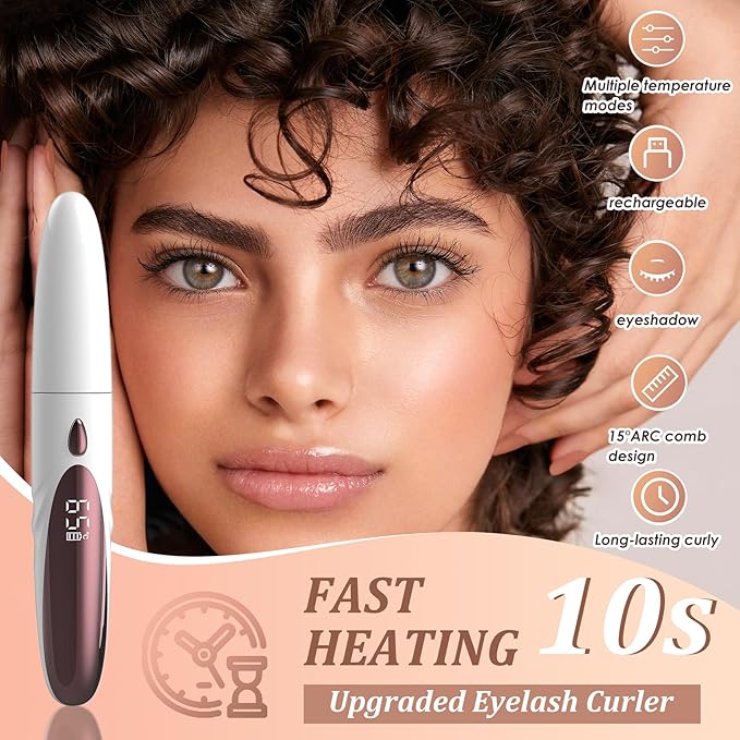 - 【Quick Natural Curling】The eyelash curlers can fast heat up within 10s,without a long wait, and the curved curler head can quickly creates the perfect natural curling eye makeup. Use after heating for 30s to achieve better results. with mascara,can quickly and easily and separate eyelashes, get super 24 hours long lasting natural curl eyelashes, let your eyes deeper and more natural.