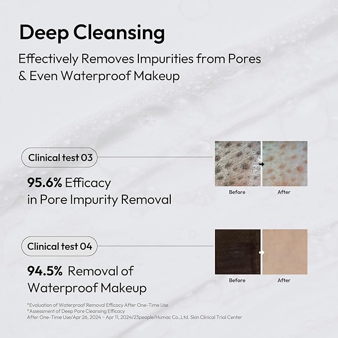 - DEEP & THOROUGH CLEANSING: A rich, creamy foam that effectively removes impurities. Clinical tests show 95.6% efficacy in pore impurity removal and 94.5% removal of waterproof makeup, leaving your skin feeling fresh and thoroughly clean