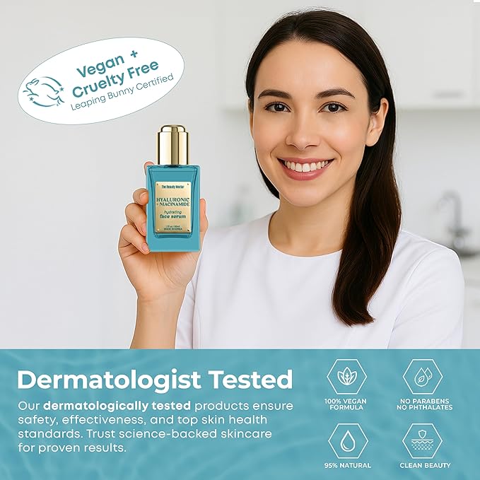 Hyaluronic Acid & Niacinamide Face Serum – Deep Hydration, Skin Barrier Repair, Tone Correcting – Dermatologist Tested, Anti-Aging, Korean Skin Care – Clean Vegan Formula – 2 Fl Oz